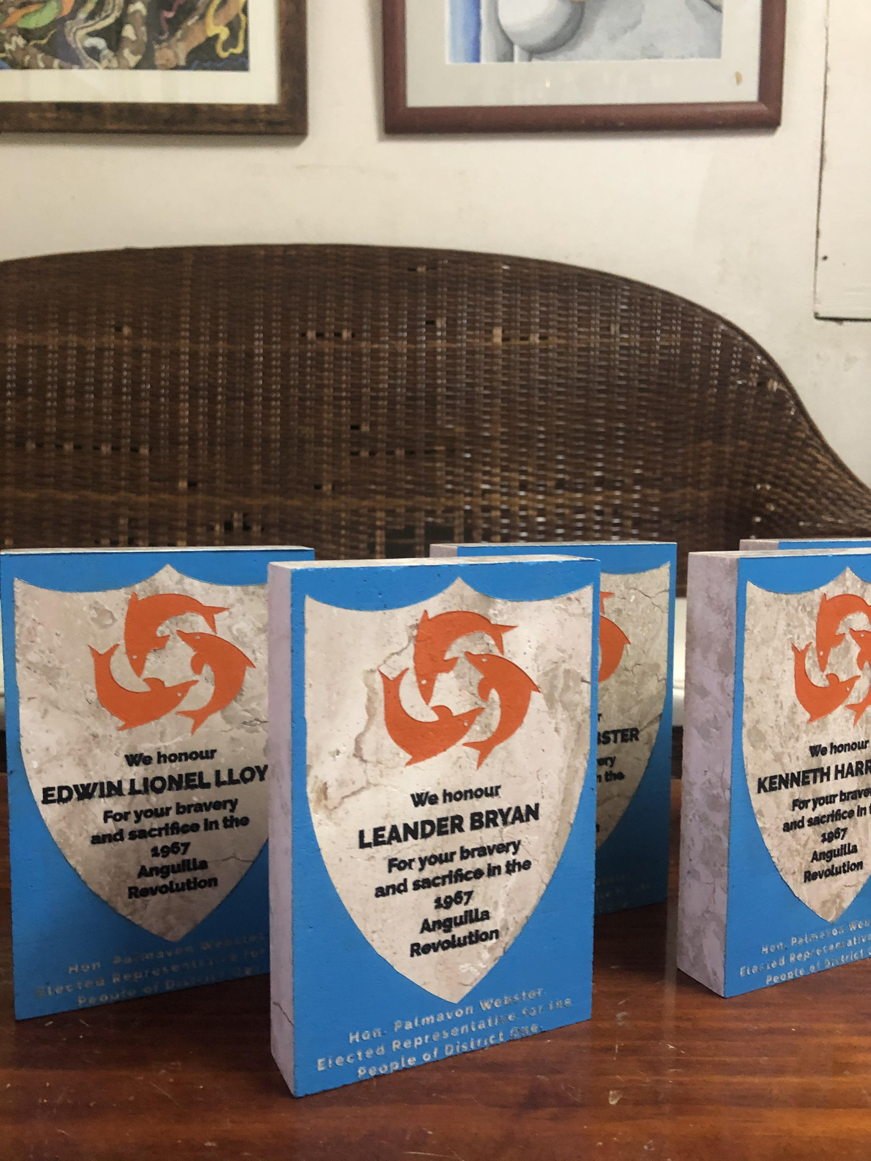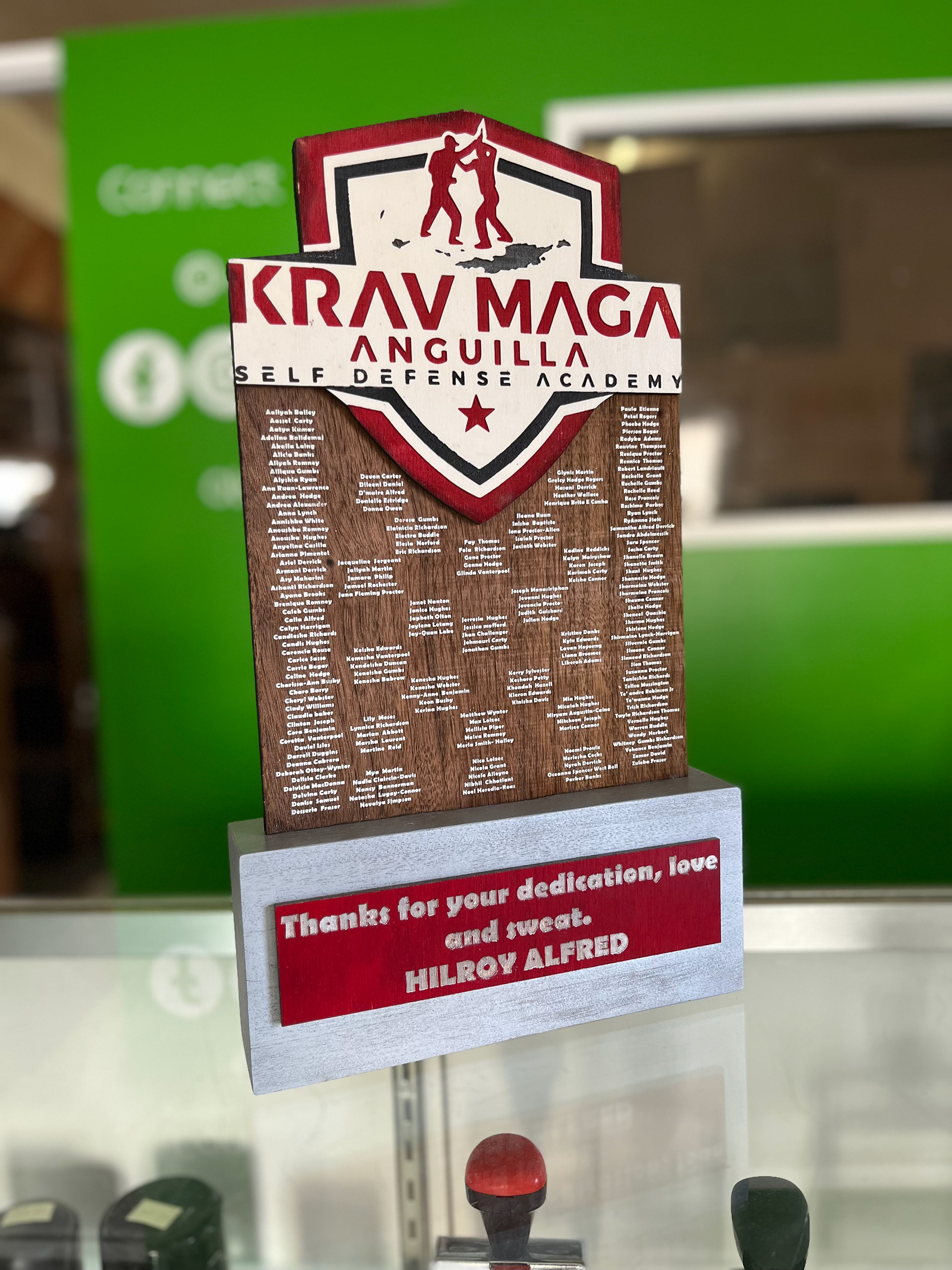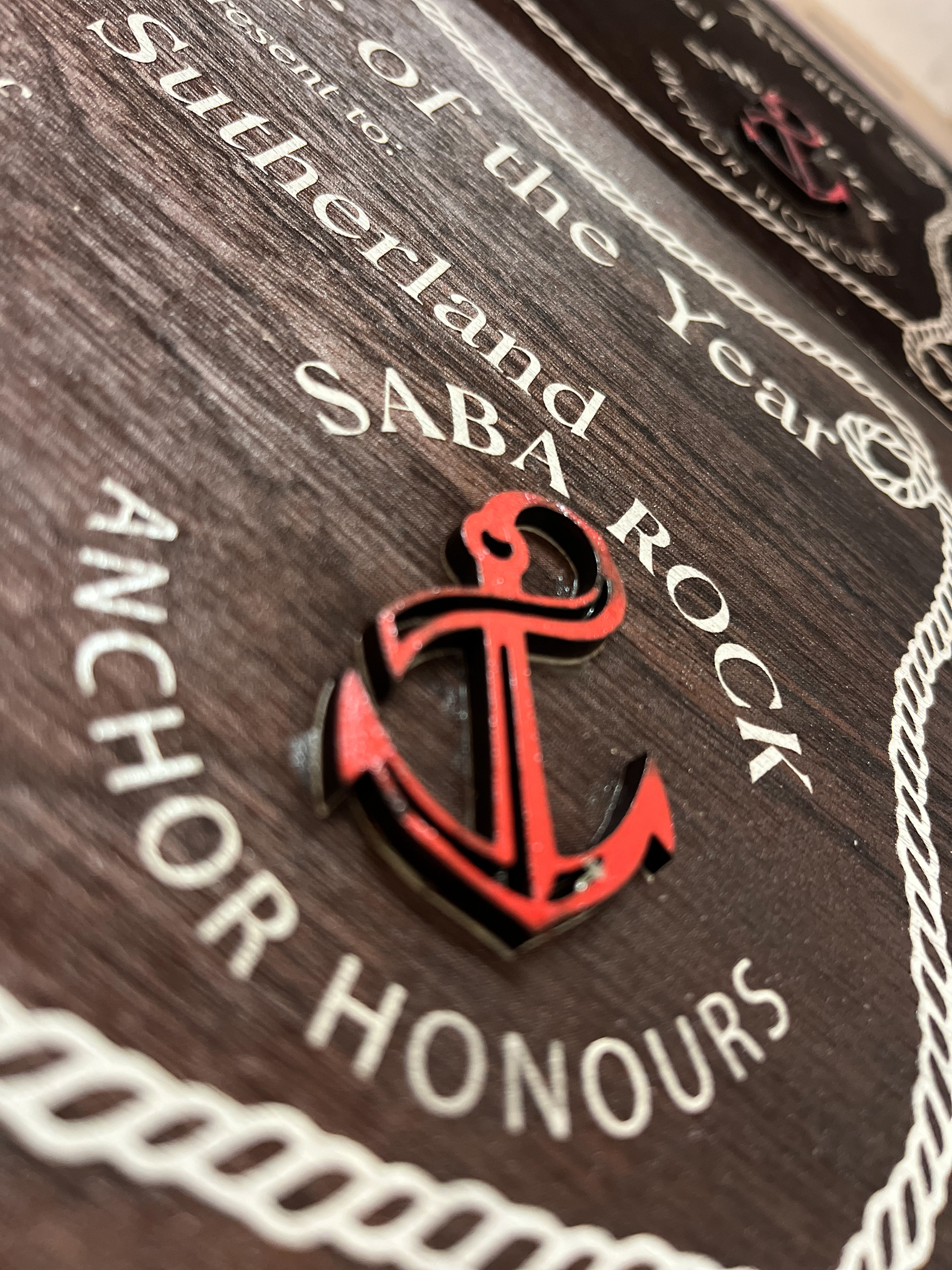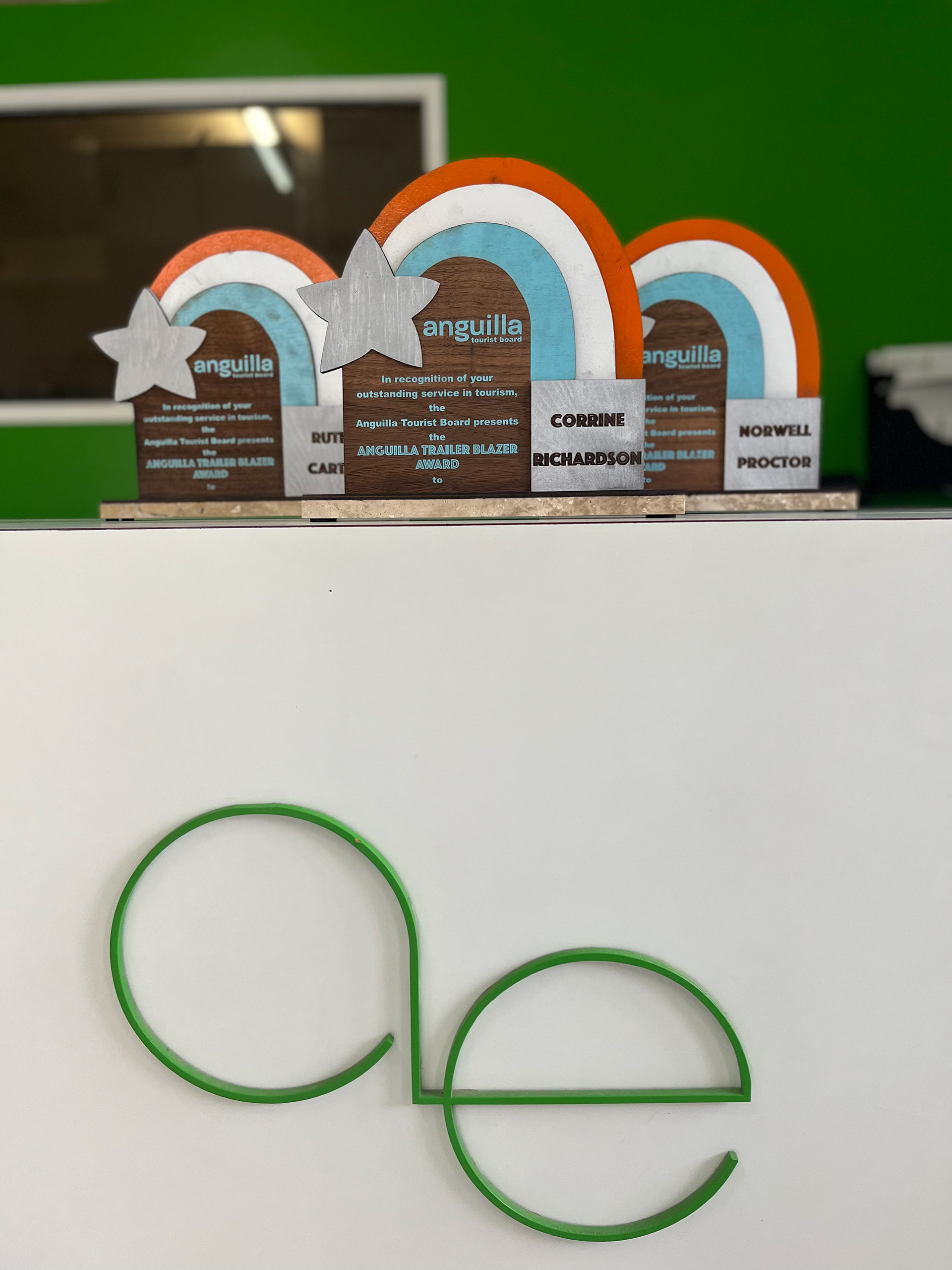 This award isĀ made with Authentic Anguilla Limestone, black aluminium screws, black acrylic, blueĀ mirrored acrylic, pink mirrored acrylicĀ and engraved and painted details.