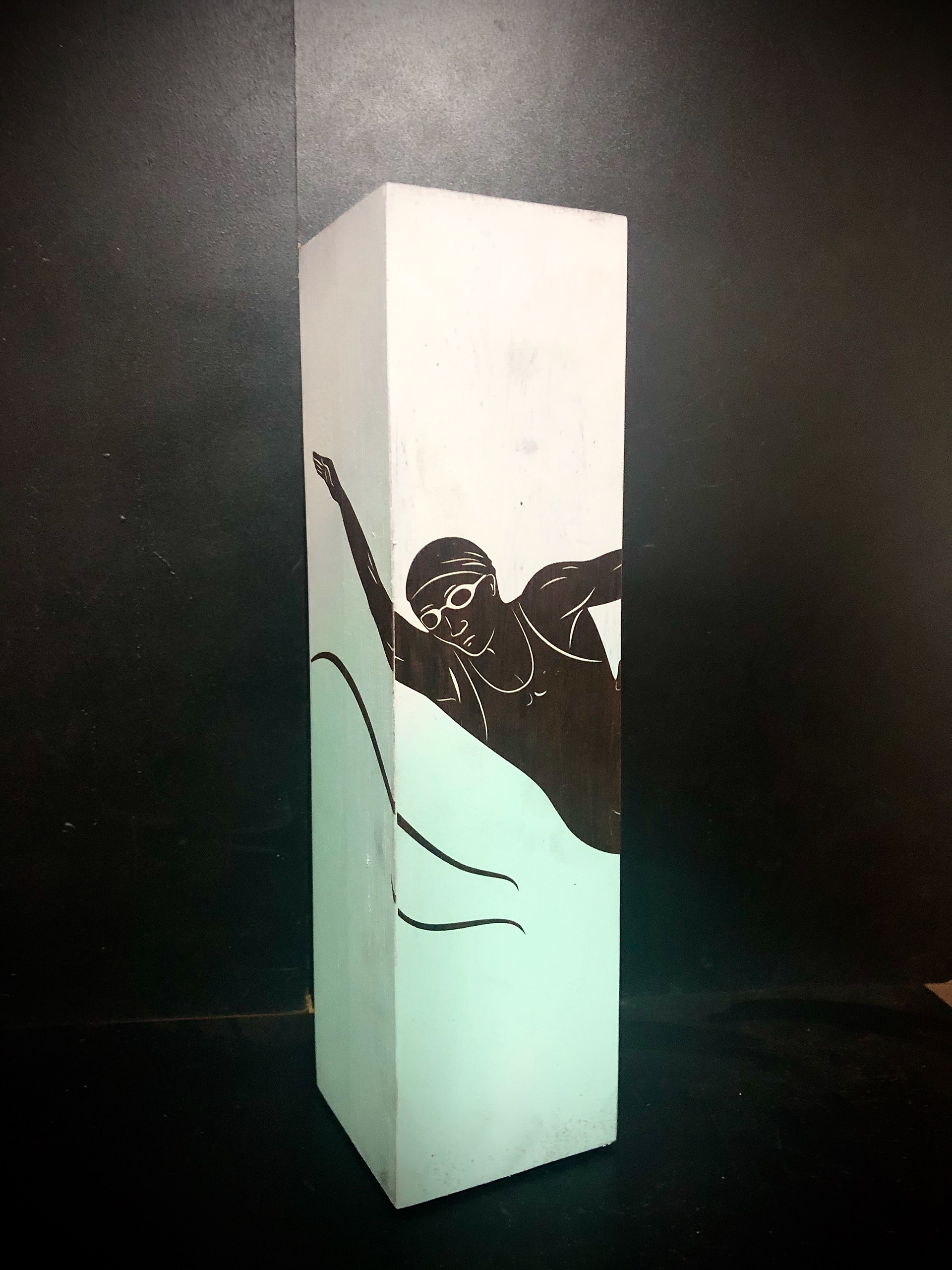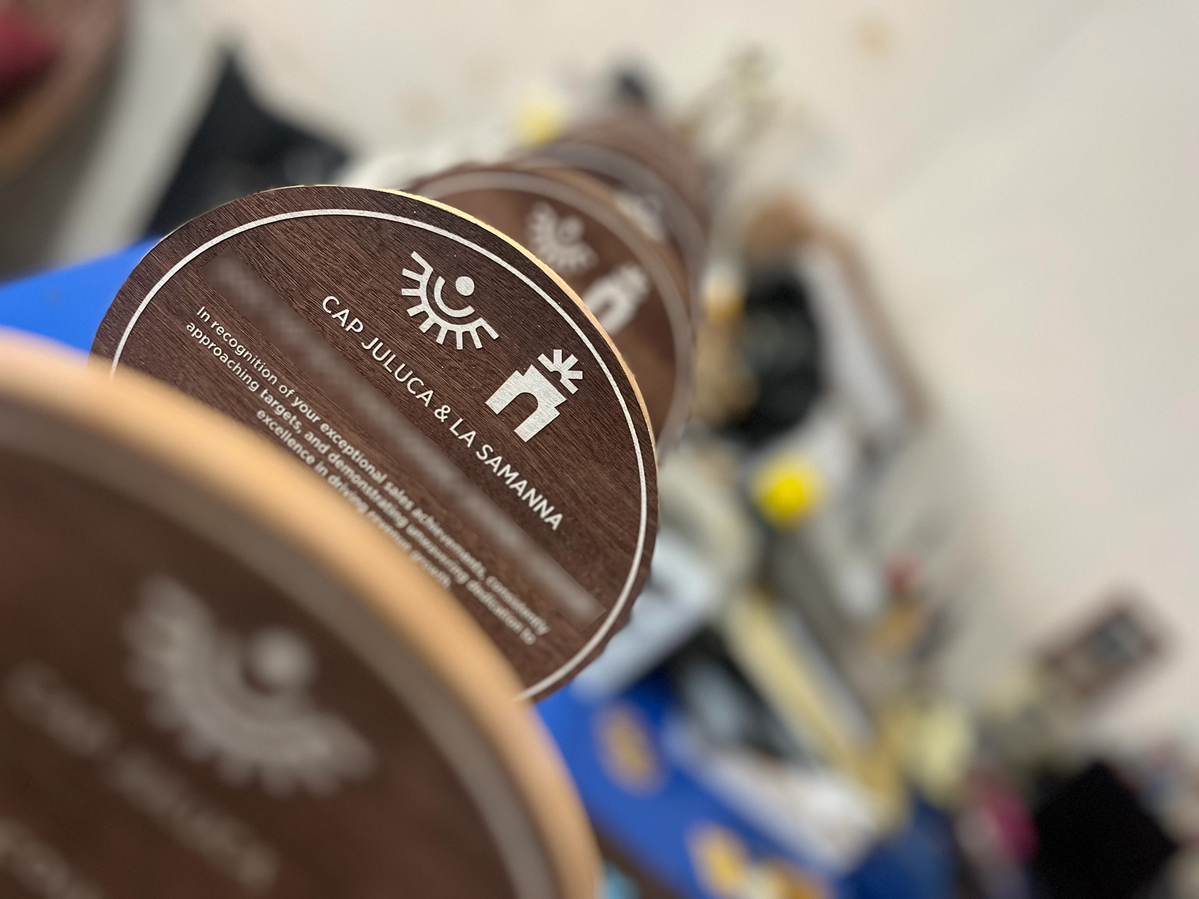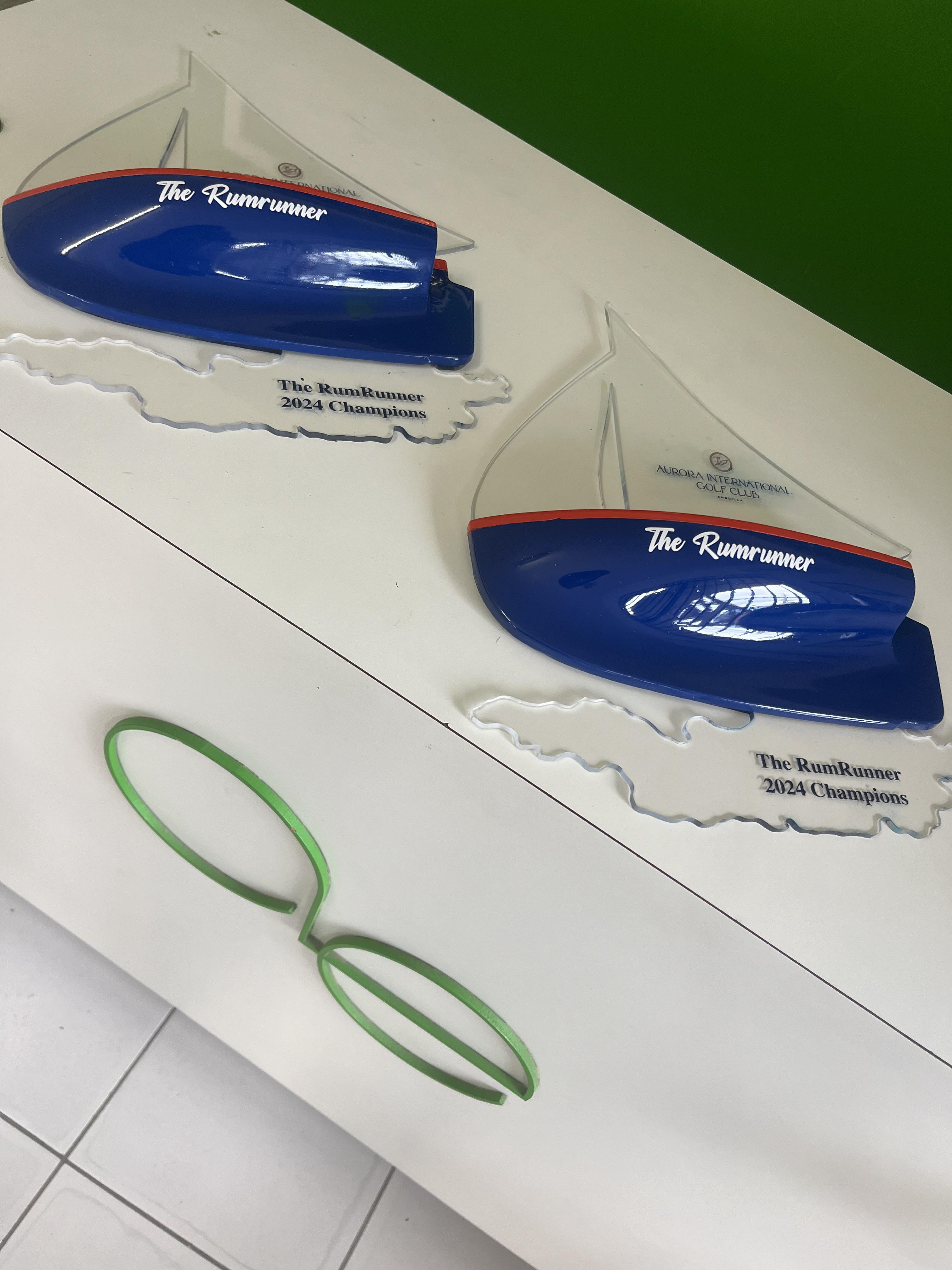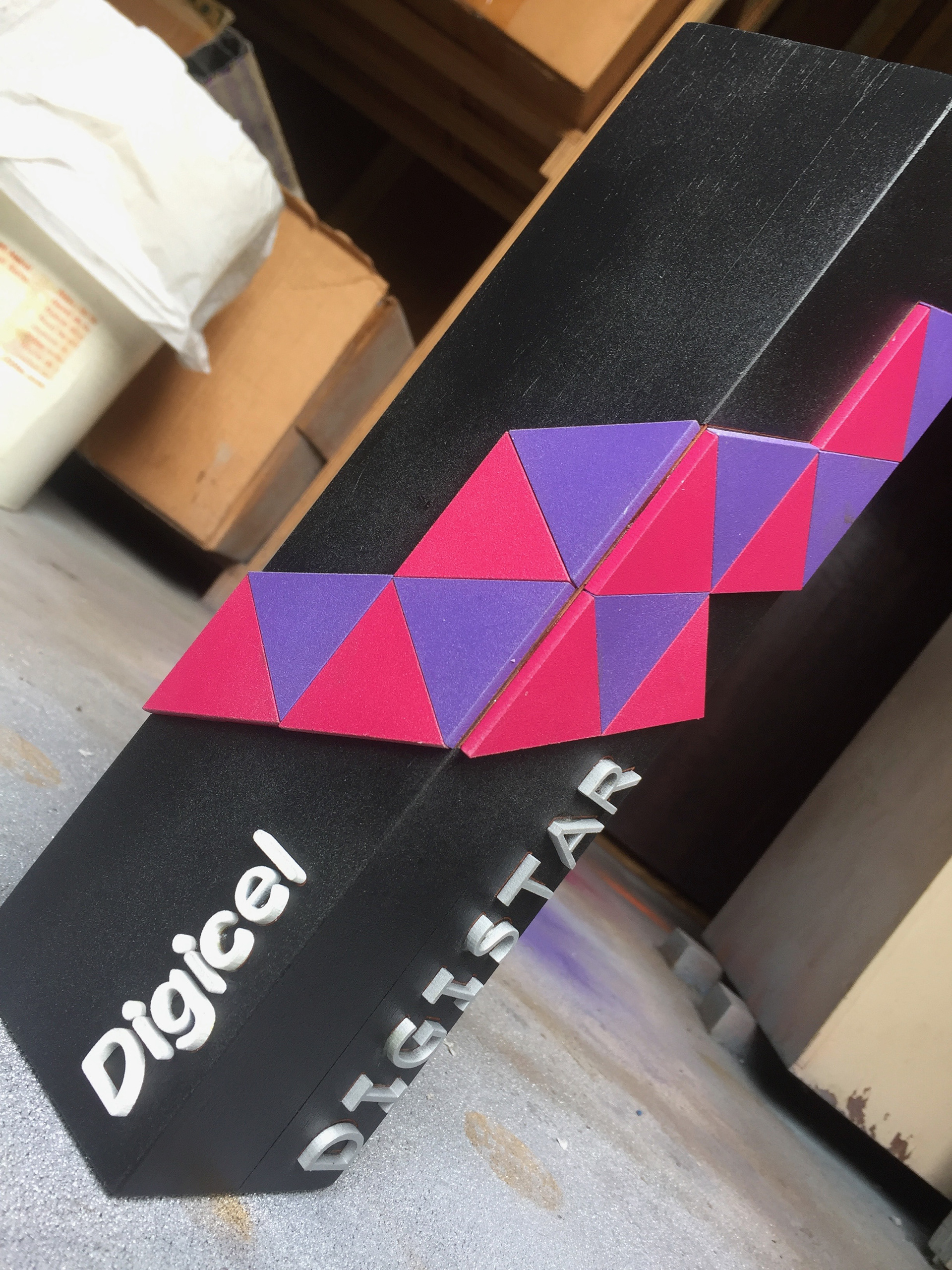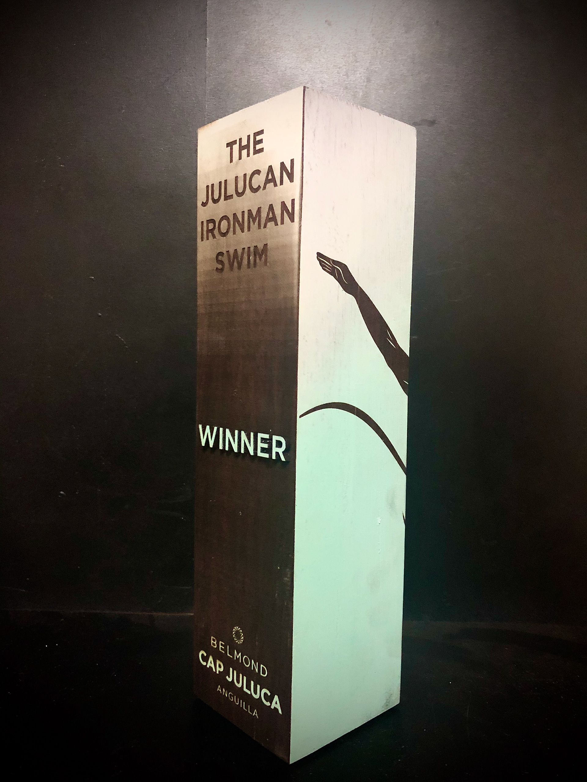 This award isĀ made with Authentic Anguilla Limestone, black aluminium screws, black acrylic, blueĀ mirrored acrylic, pink mirrored acrylicĀ and engraved and painted details.