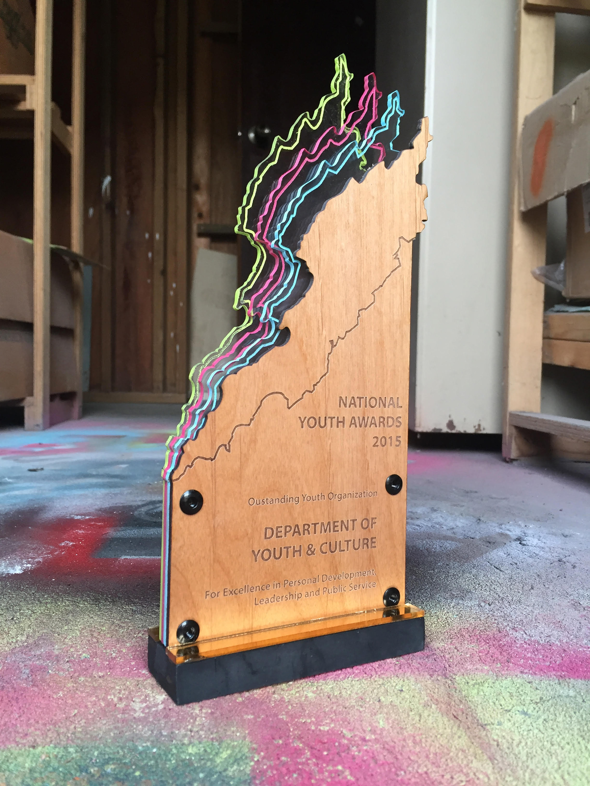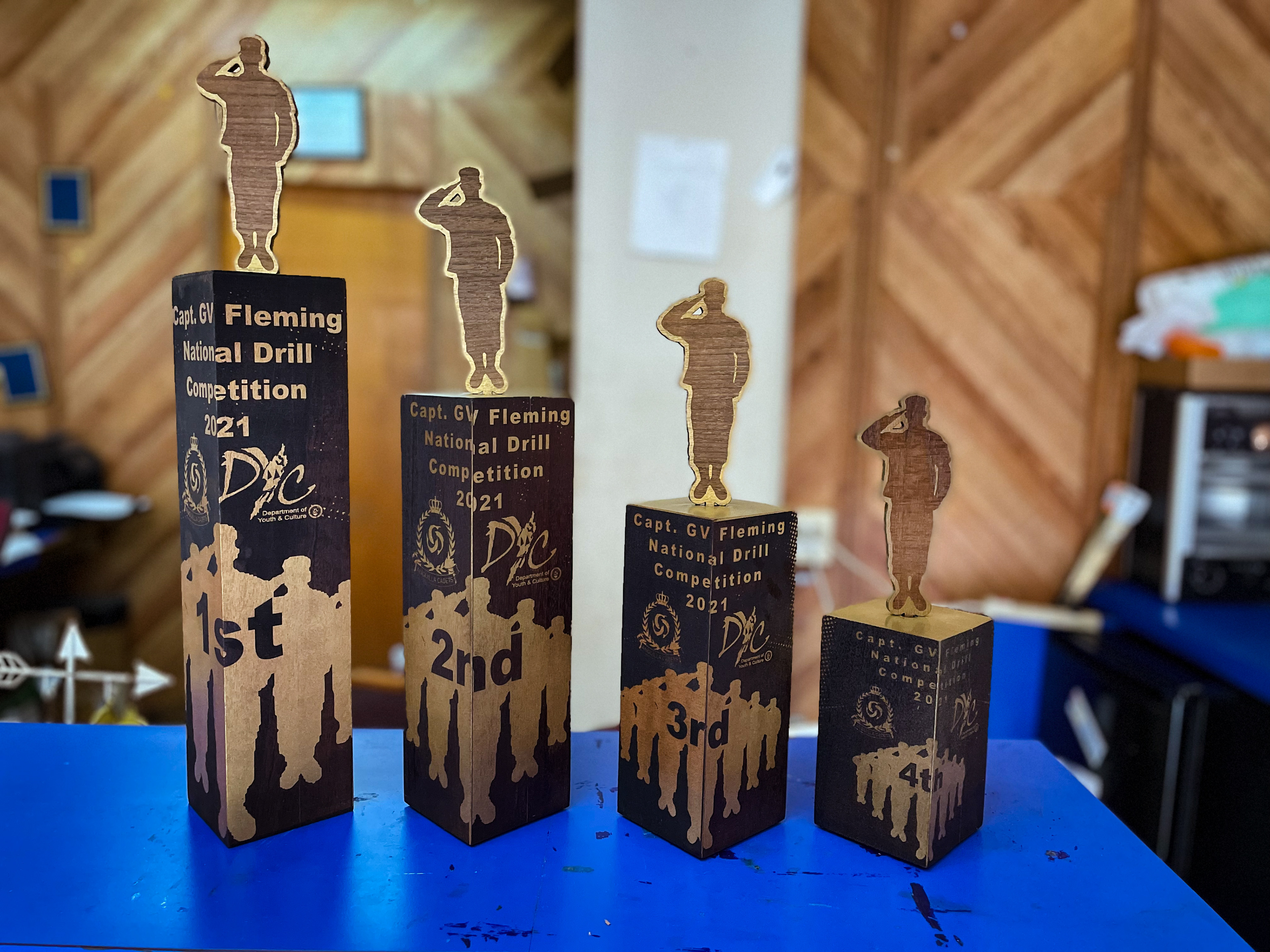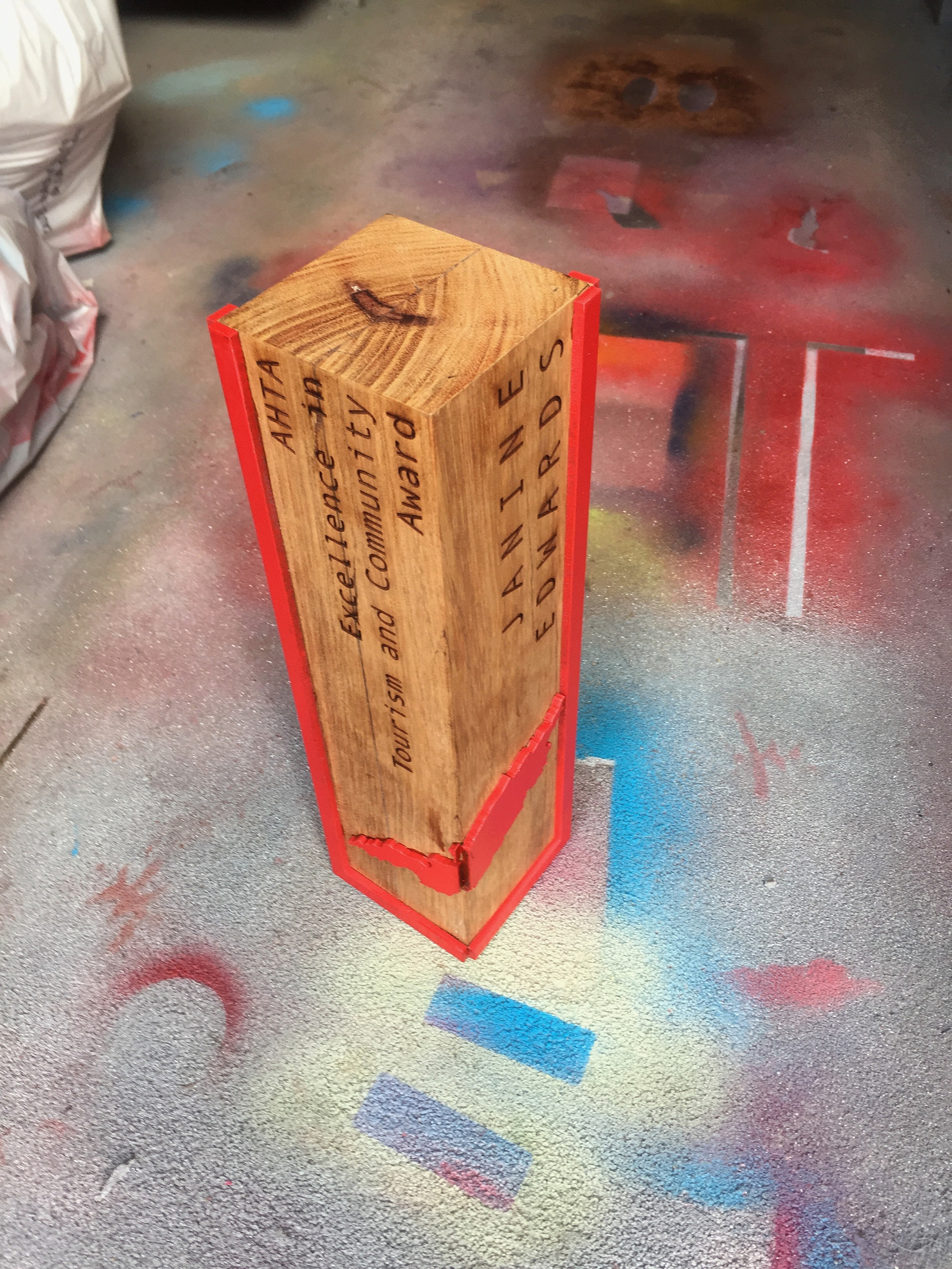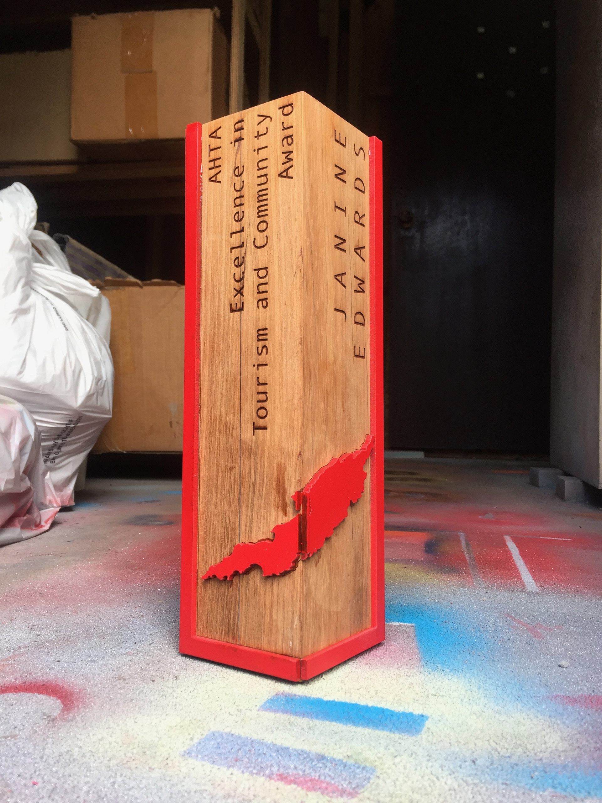 These Awards are made with cherry, brass screws and laser engraved details and text.