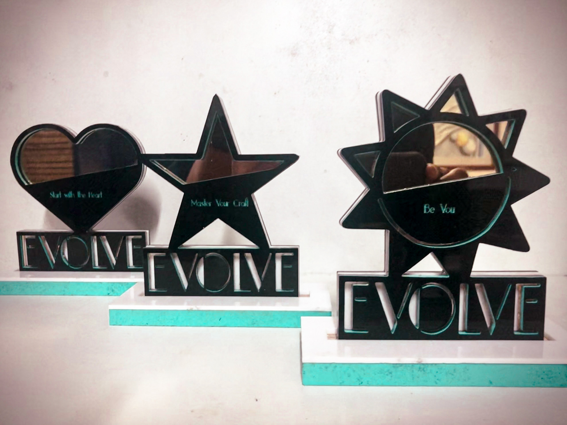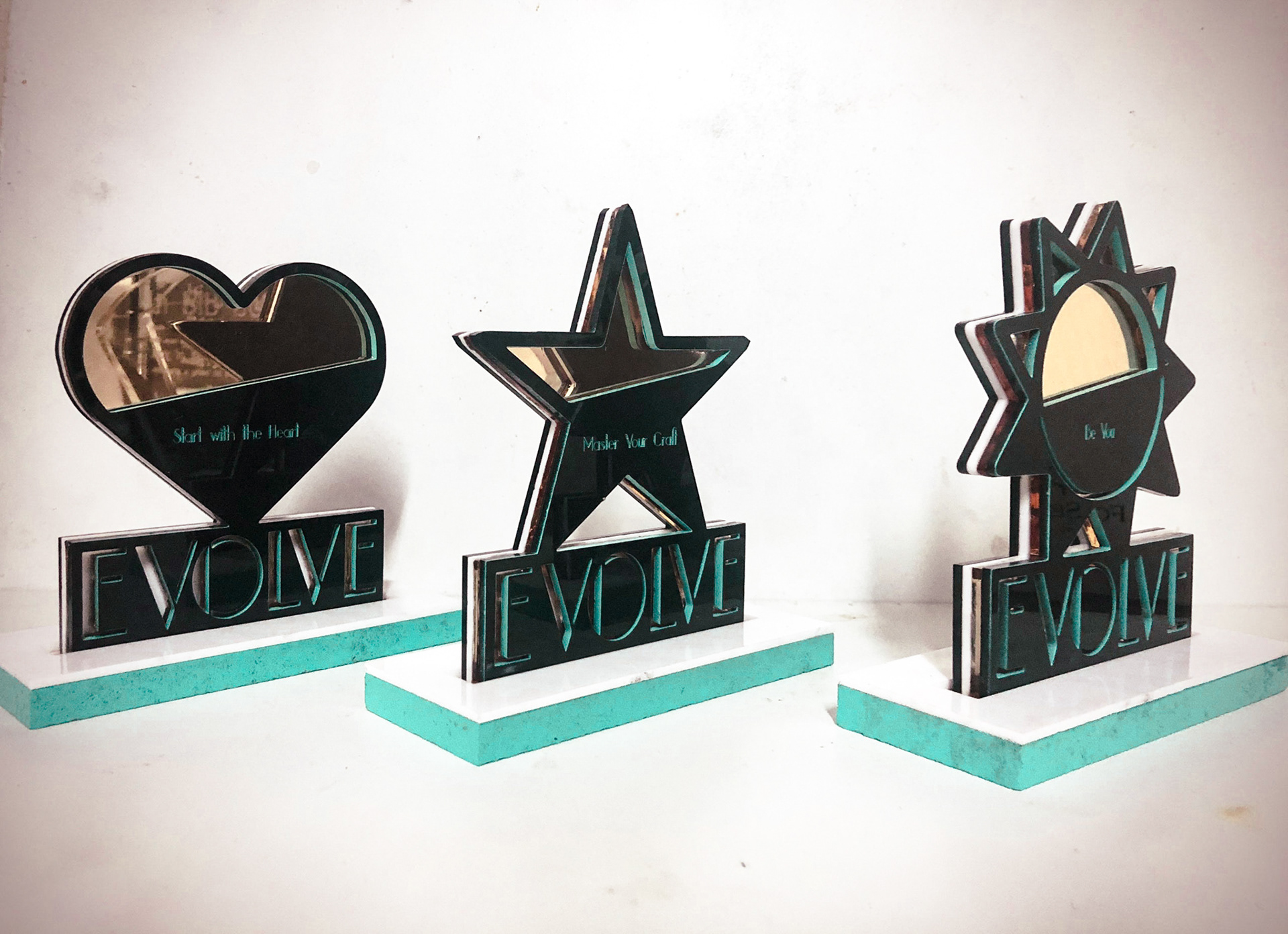 Branding and Design is a vastĀ field. Art is also a vast field in which branding and design is a subsidiary. As the Creative Director at @Alloydent I used both my branding and visual arts background and started designing and creating Custom Sculpture Awards. The award in this display are all unique to the client, flowing with their company brand or direct to the individual achievement.