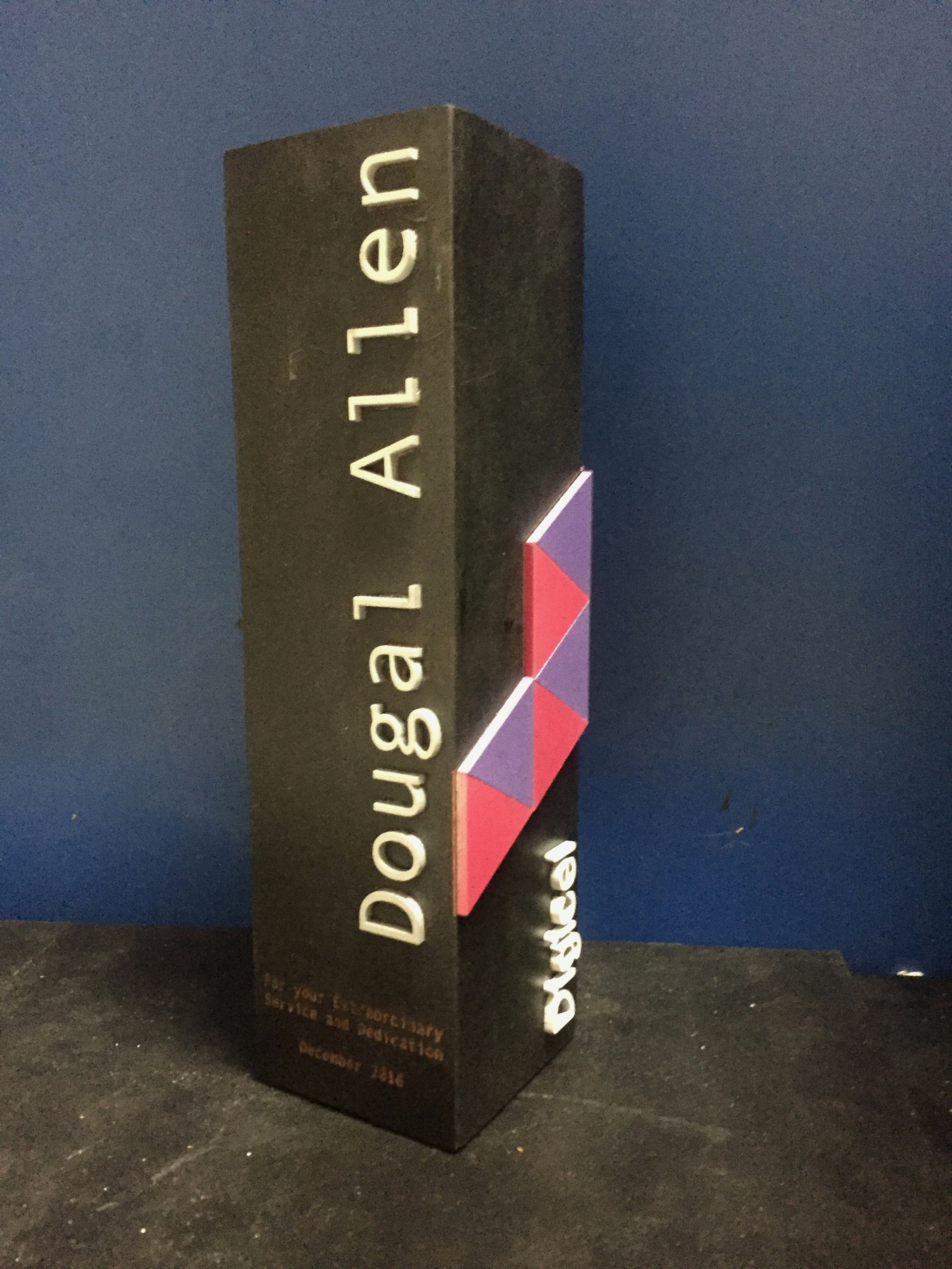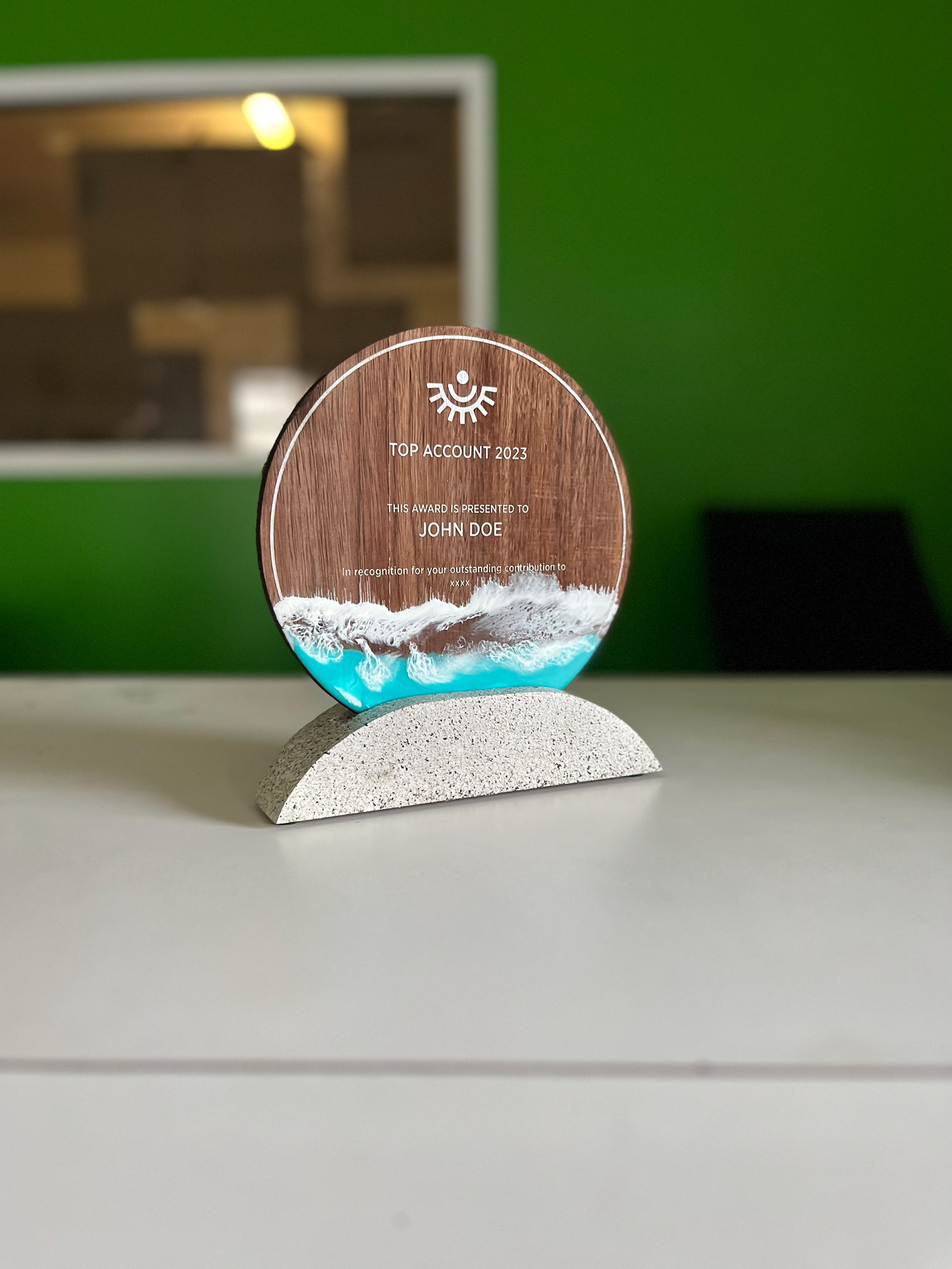 This a is a mix media award designed for the @alloydent Awards line. A mix of wood, acrylic and stone.