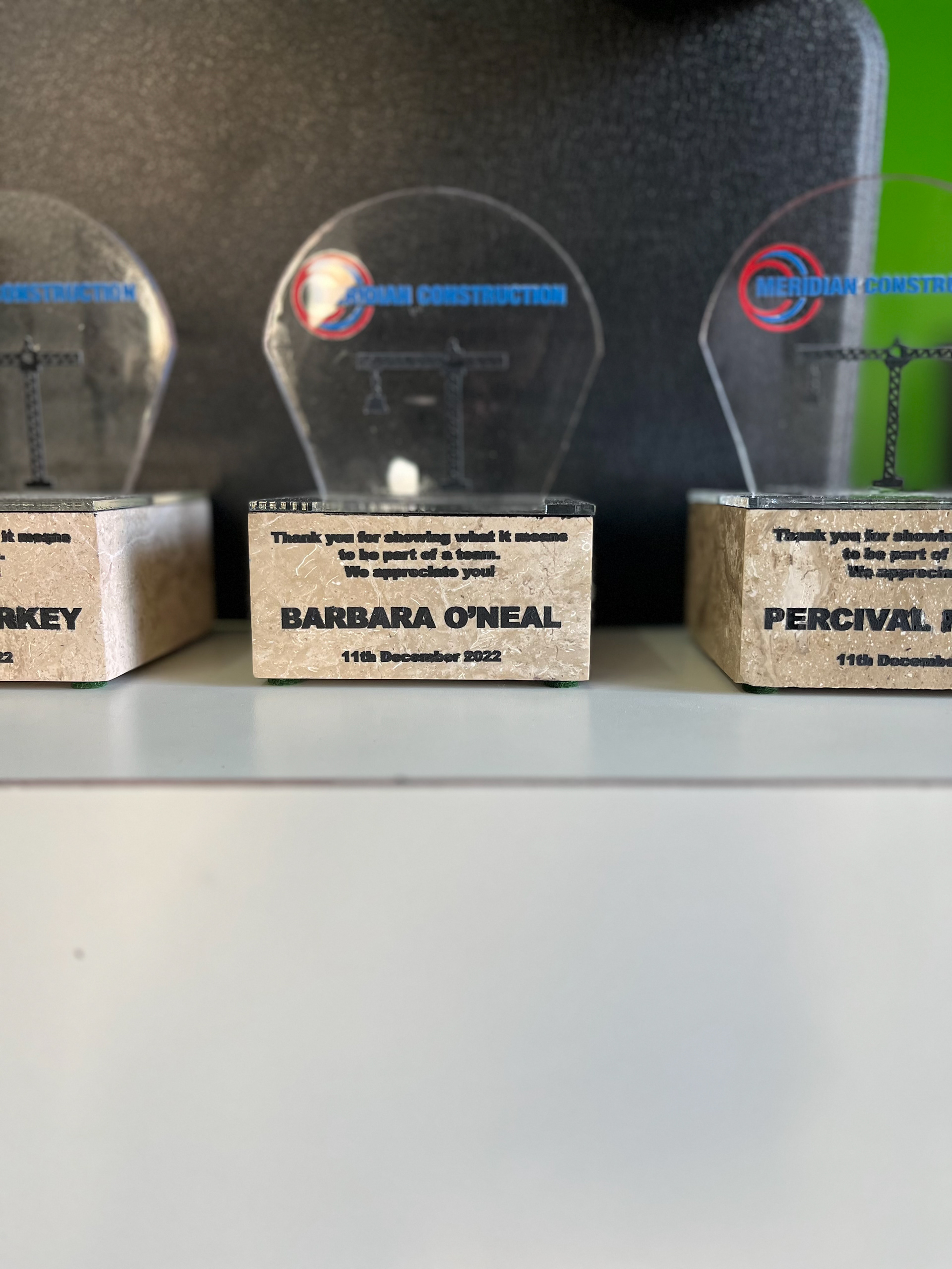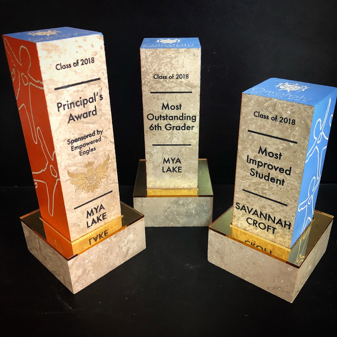 The Annual Custom Acrylic and Stone Leadership Awards for The Adrian T. Hazell Primary School Graduation Ceremonies.