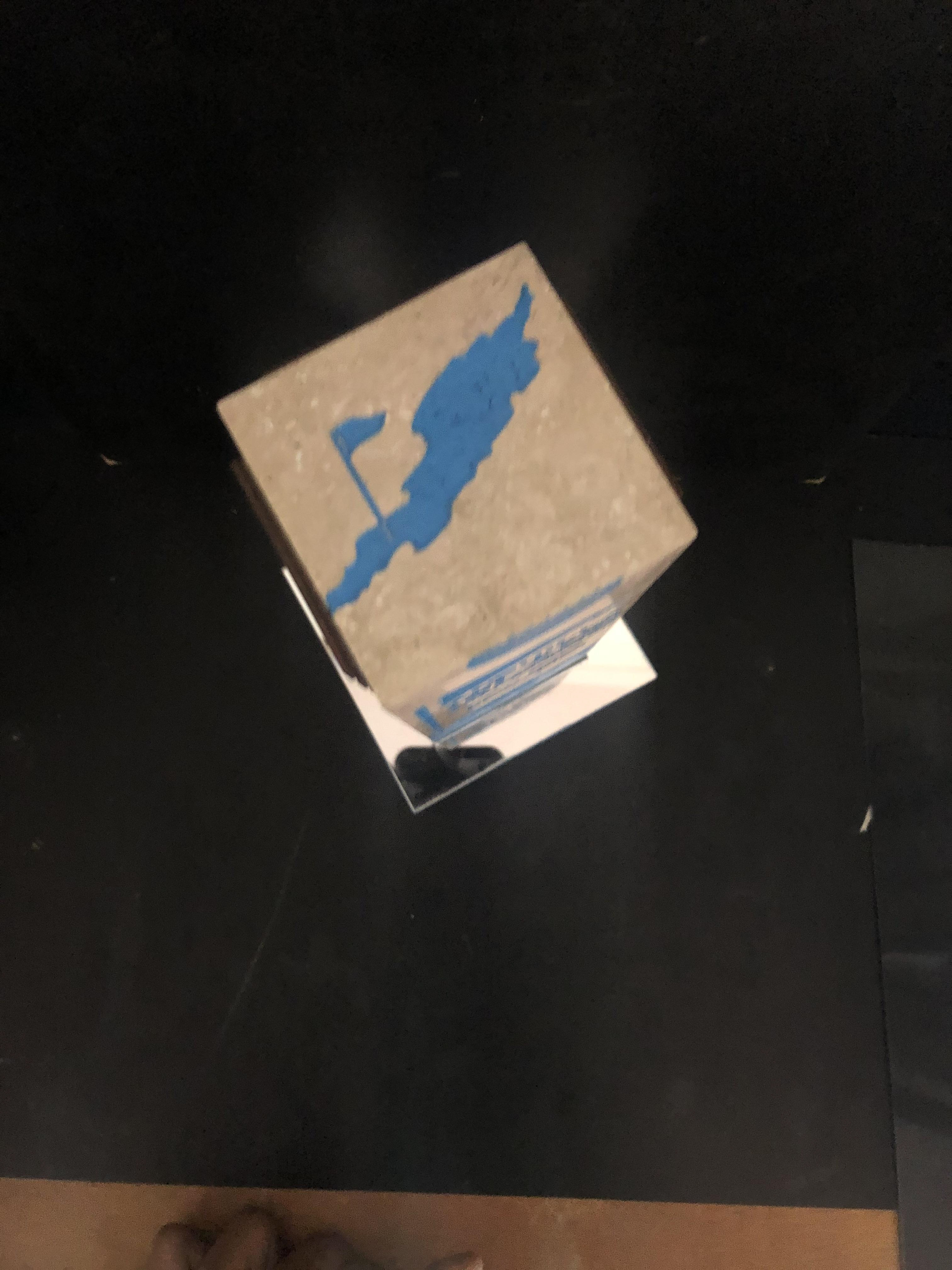 My Very first Authentic Anguilla Limestone Award, the 5"x7" Block available with out without a stand. With the stand it usually accompanies a reflective acrylic finishing.