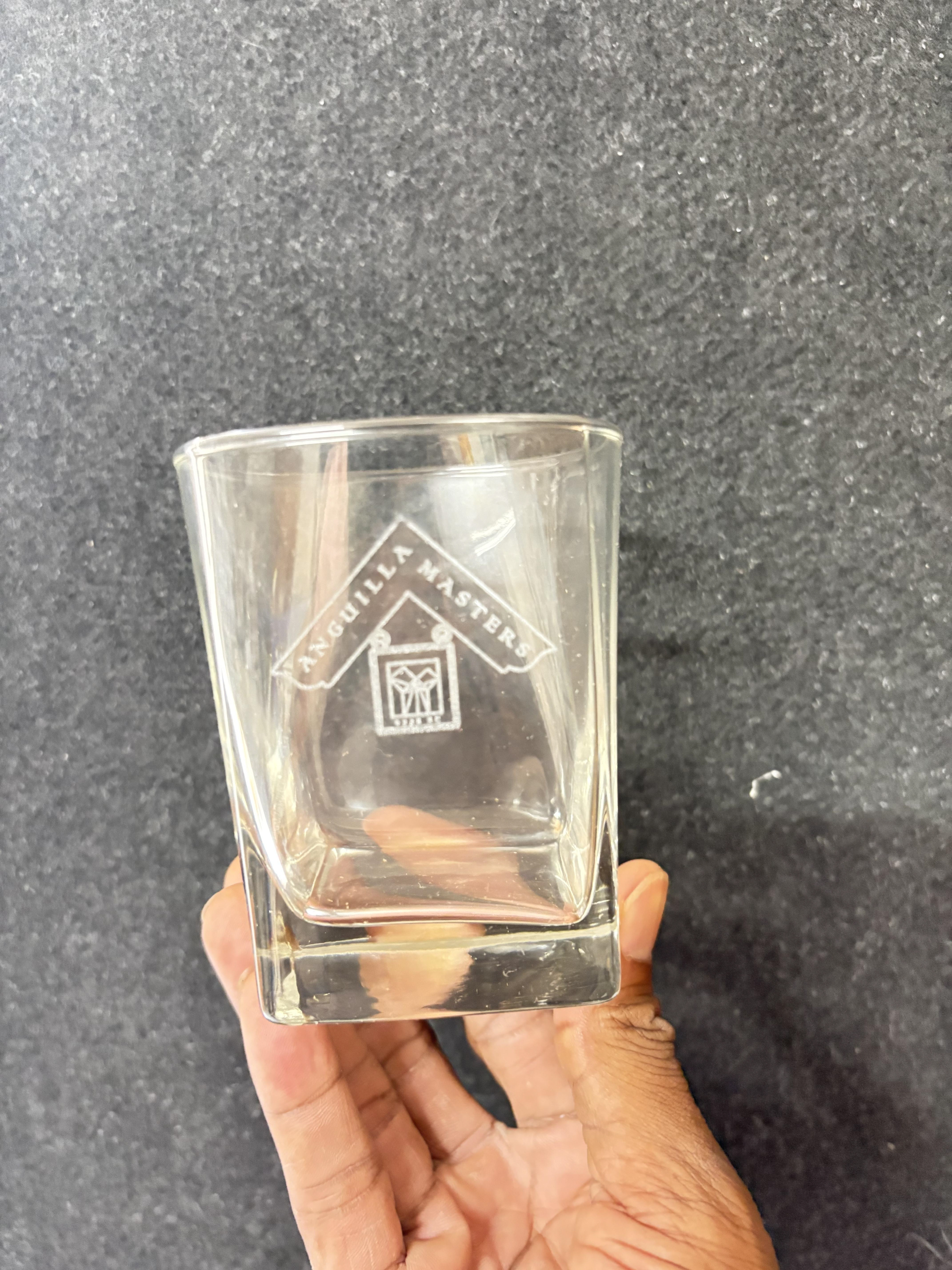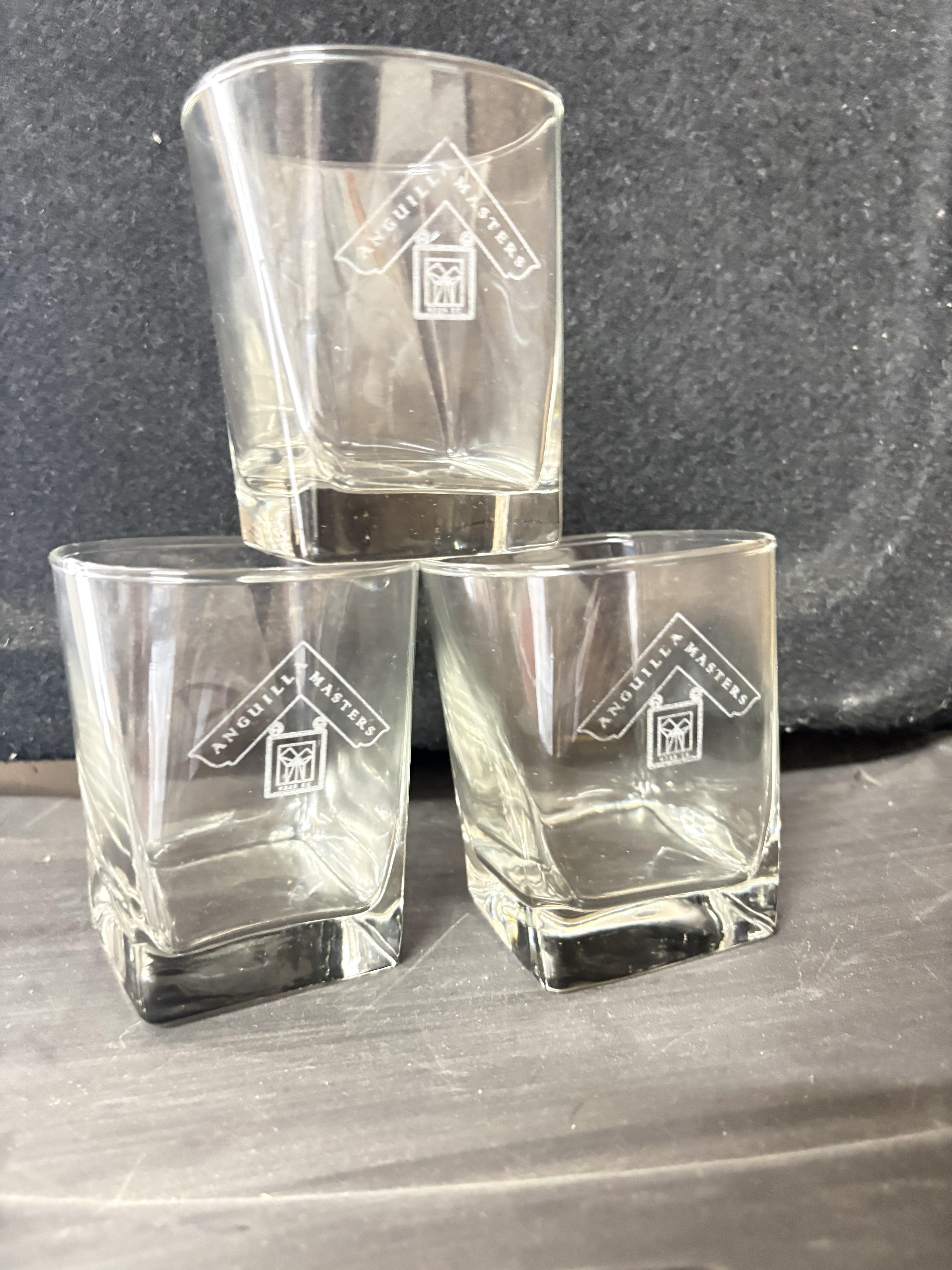 Custom square rocks glasses created as commemorative keepsakes for Unity Lodge and the Anguilla Masters Lodge. Each glass is etched with the lodge insignia, offering a timeless and understated way to mark fellowship, tradition, and shared moments. Designed to be both functional and meaningful, these pieces serve as lasting mementos of connection and celebration.