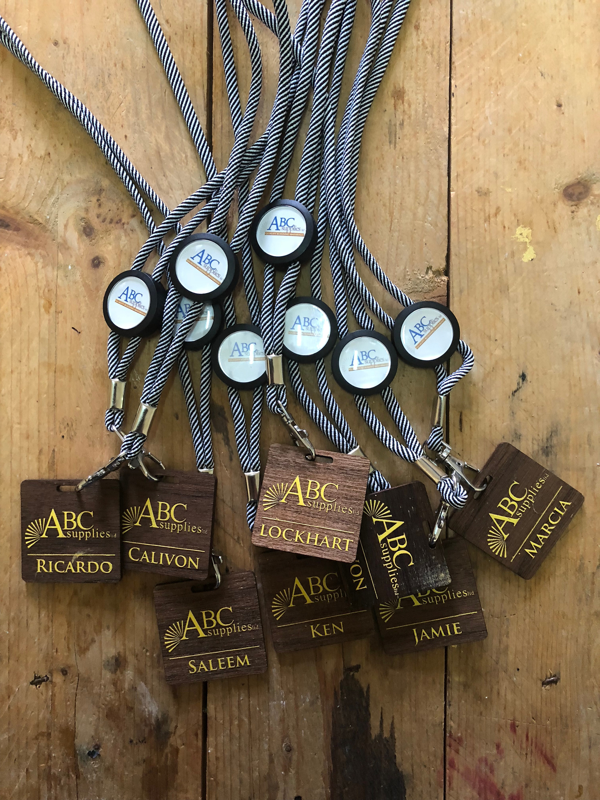 We create the information tag for your lanyards out of wood, plastic or acrylic.