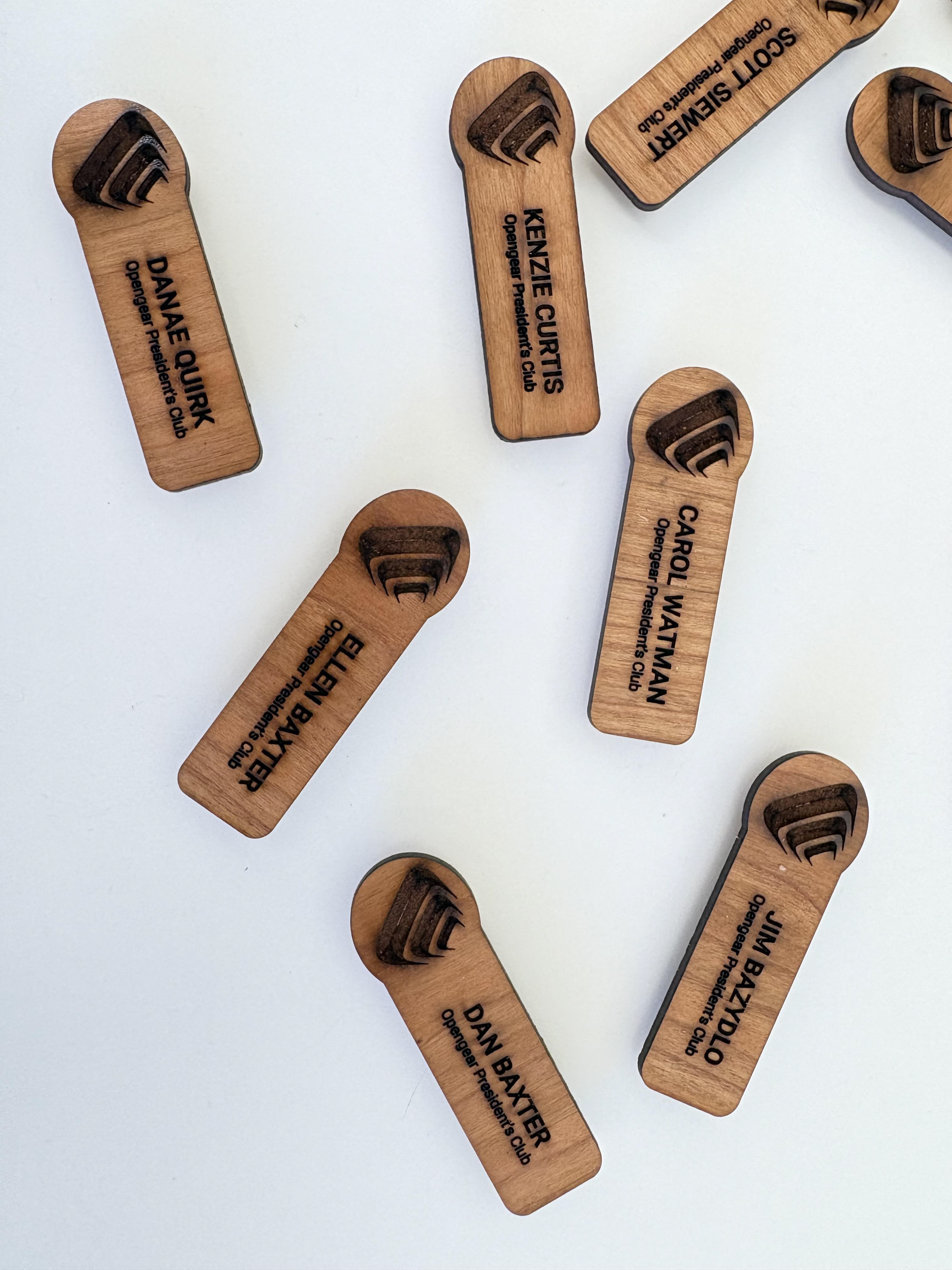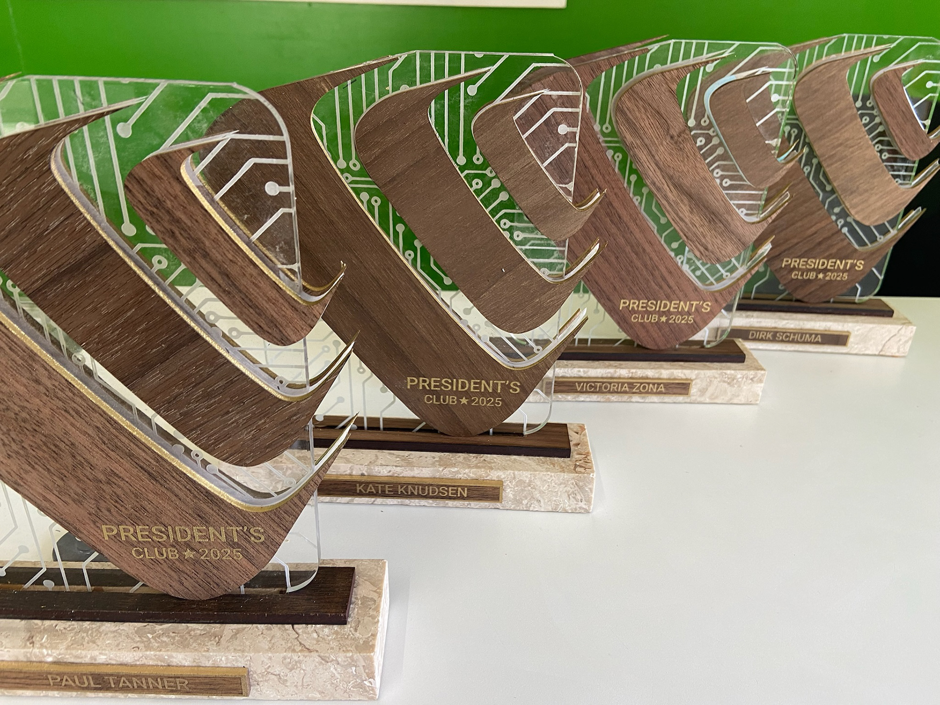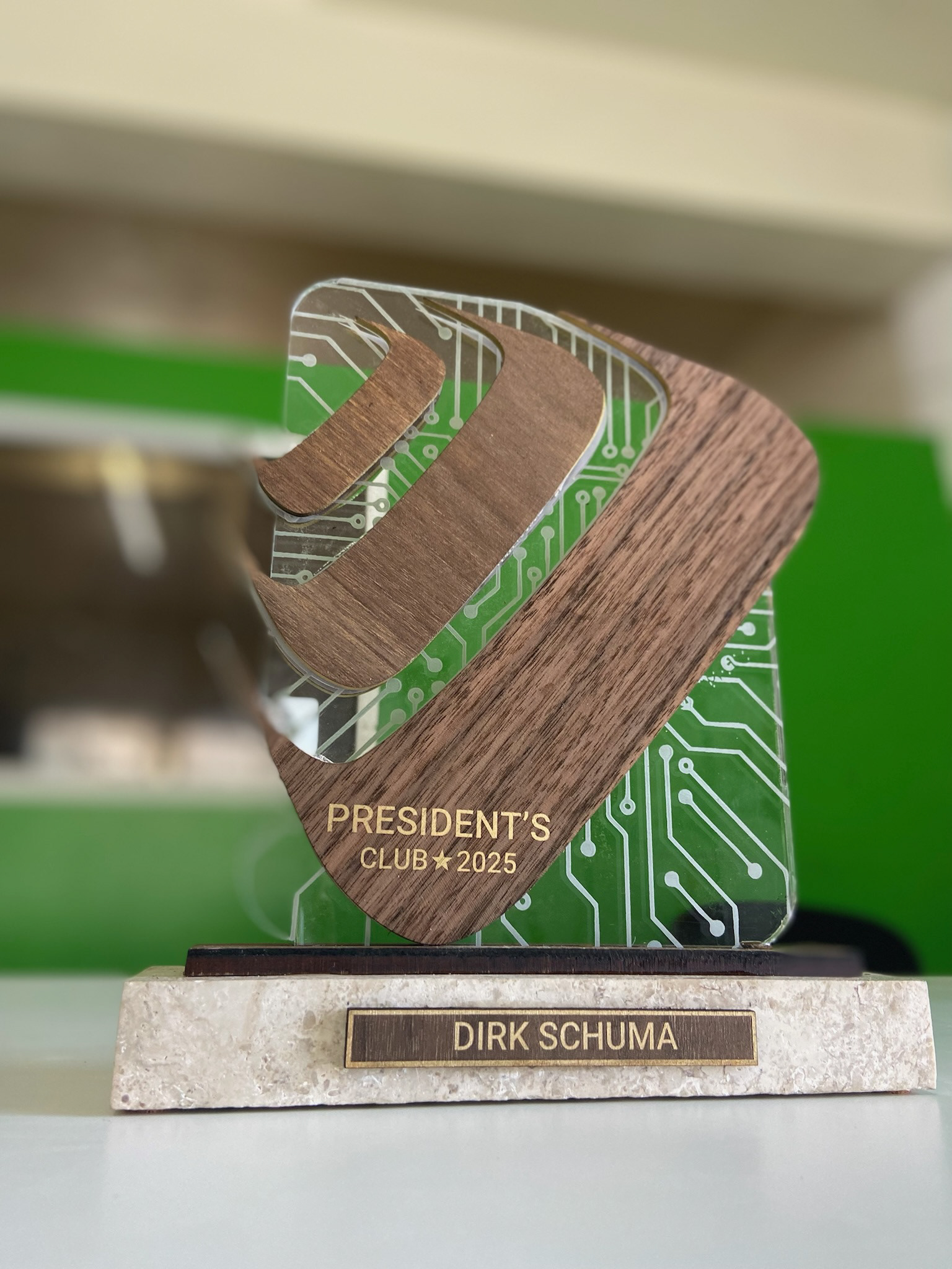 Custom awards designed base on the company's brand. Mix media, acrylic, walnut and local limestone bases.