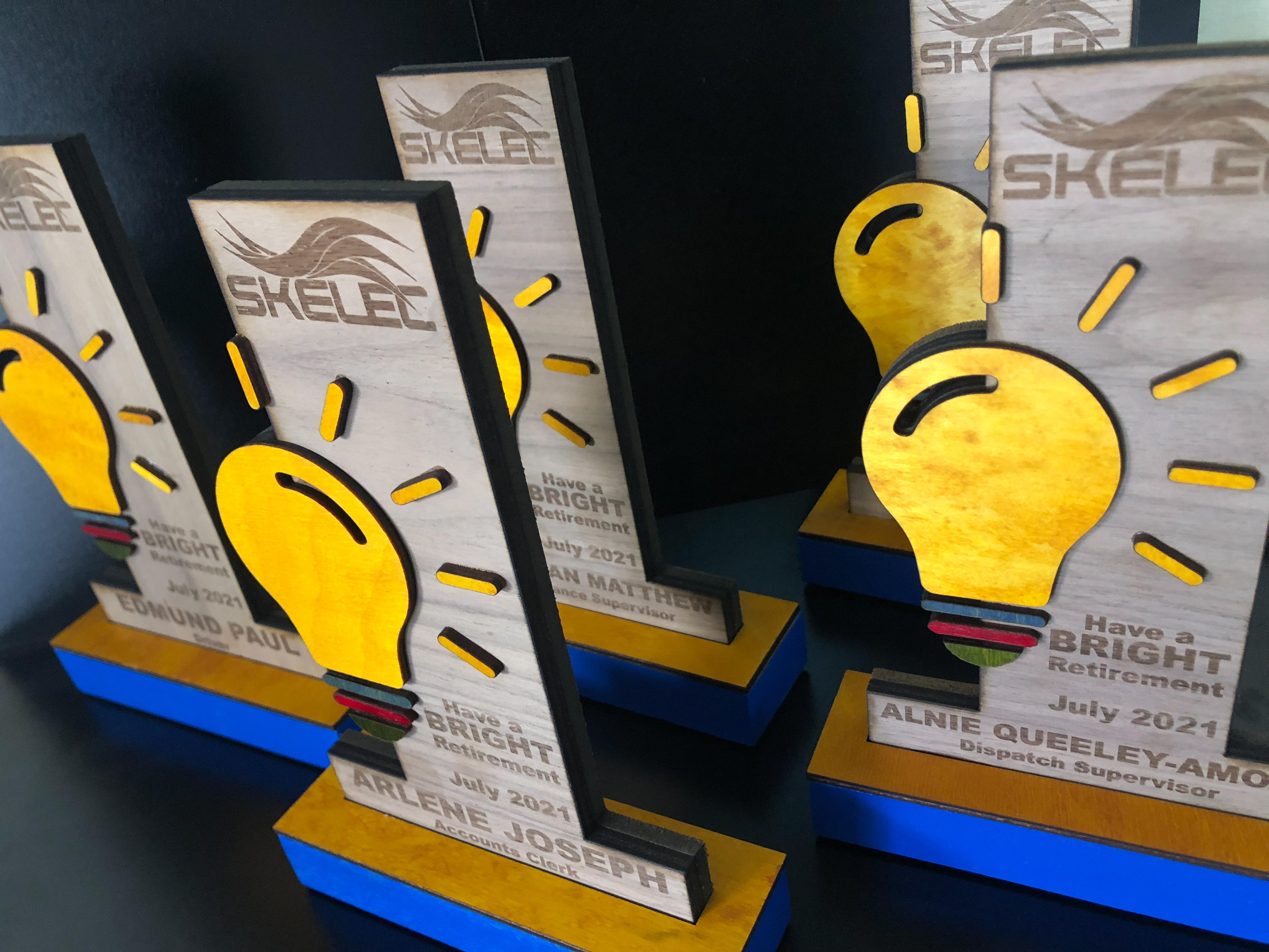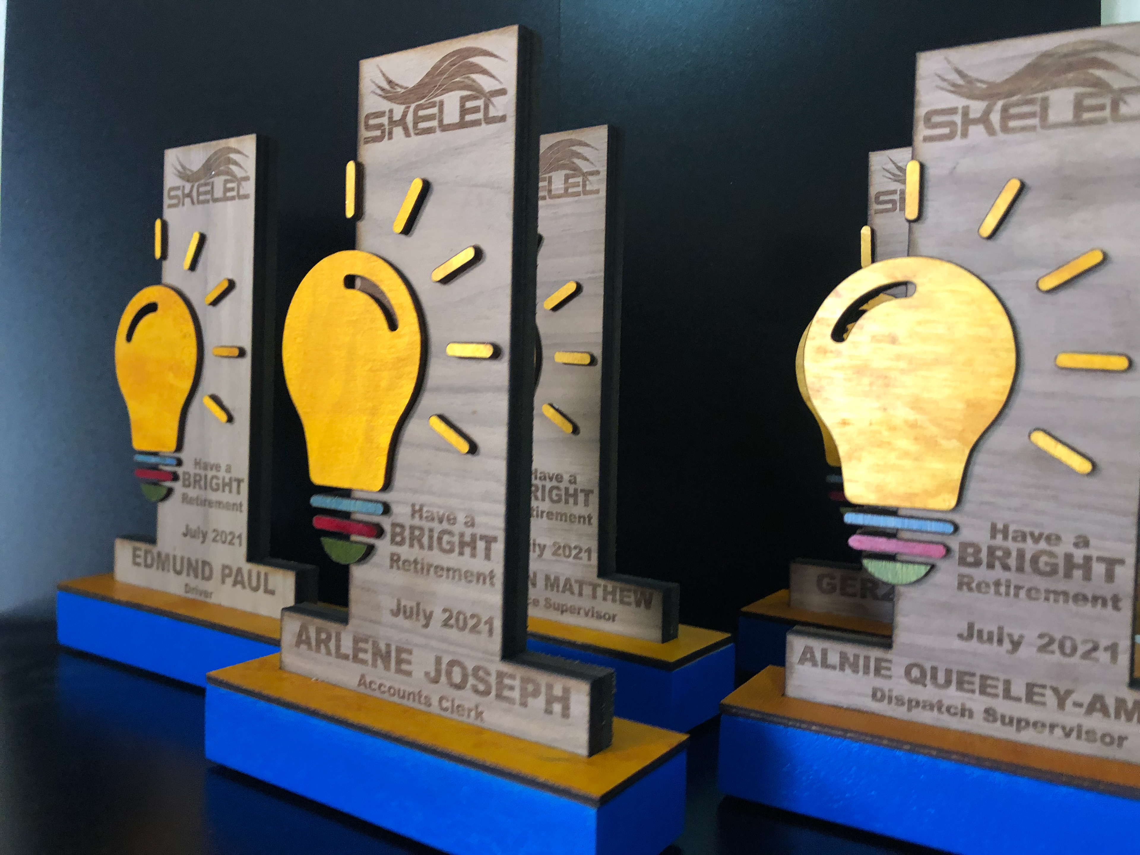 We had the privilege of designing and manufacturing some of our Custom Sculpture awards for Skelec: the St. Kitts Electricity company.